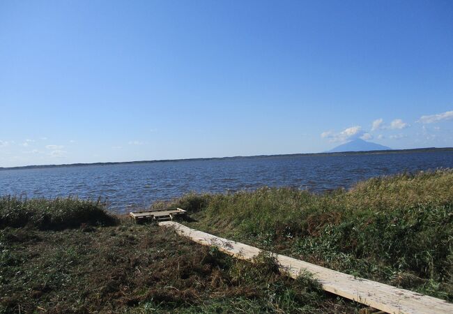 サロベツ原野の中にあって、水深はたった1.8mくらいしかない浅い沼なんですけど、面積はなんと3.47㎢もあるから、とっても広いんですよ~!