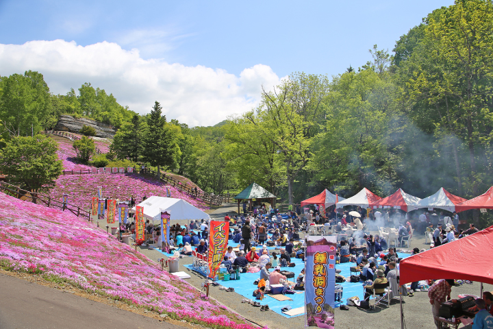 中頓別鍾乳洞自然ふれあい公園内の特設会場で開催される『鍾乳洞まつり』では、神秘的な鍾乳洞や一面に咲き誇る芝桜を楽しむことができます。